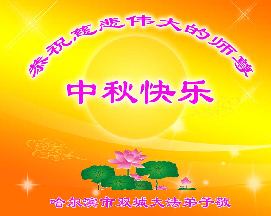 师尊您辛苦了!我们只有精進实修,做好三件事,让师尊少操一些心。 黑龙江省哈尔滨大法弟子恭祝师尊中秋节快乐!