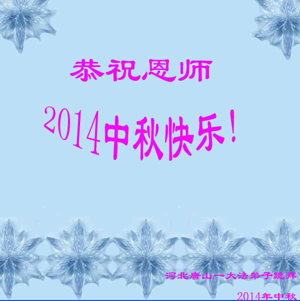 【明慧网二零一四年九月八日】 河北唐山一大法弟子恭祝慈悲伟大的师尊中秋快乐!