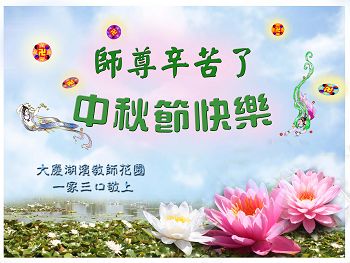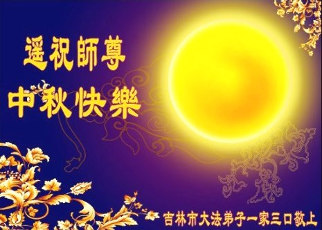 【明慧网二零一四年九月八日】 吉林大学大法弟子一家三口恭祝师尊中秋节快乐!