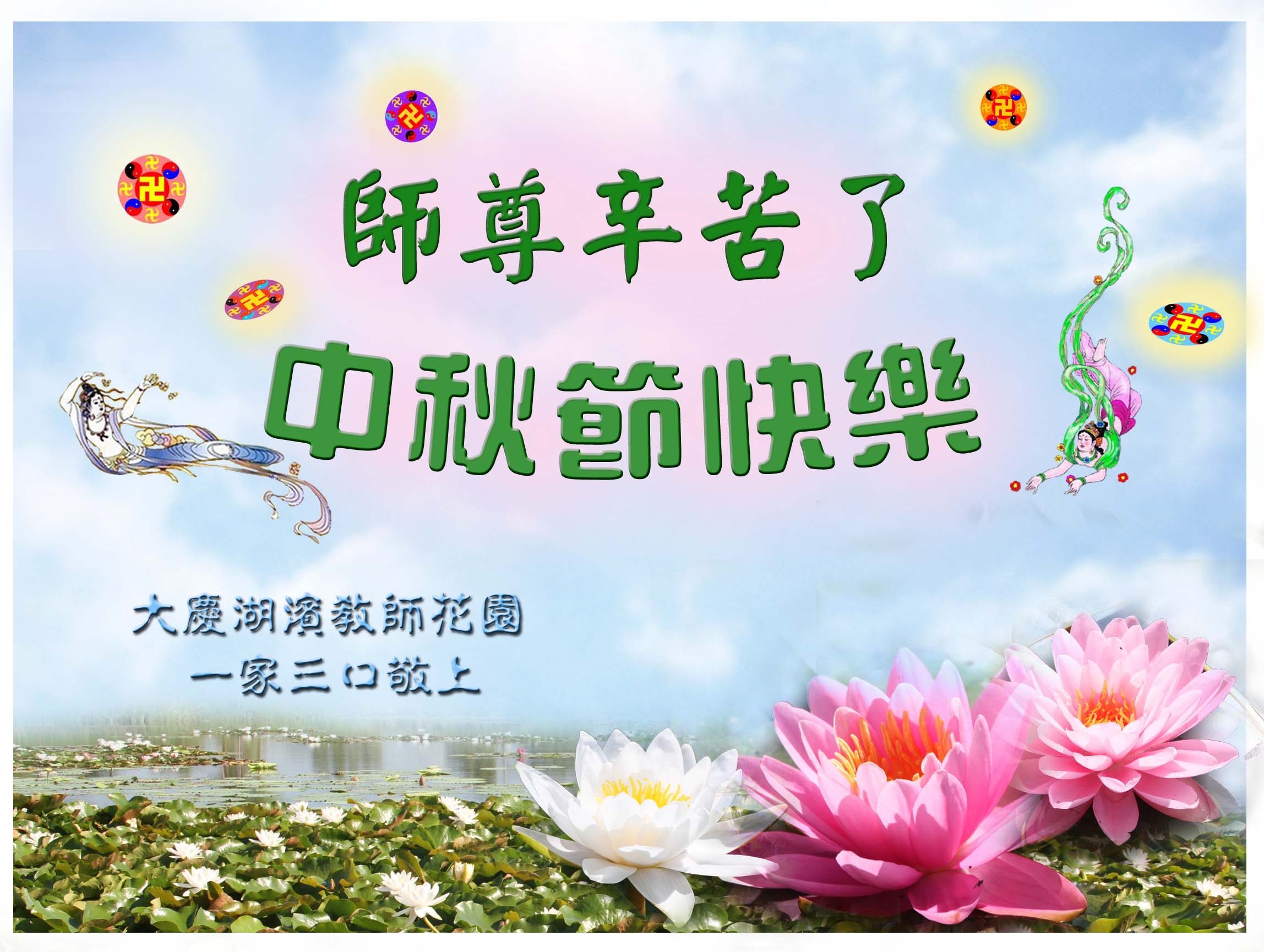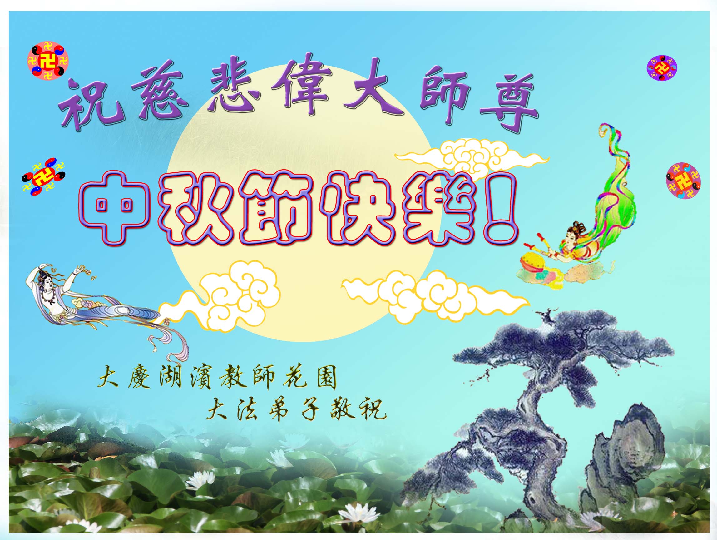 每逢佳节倍思亲,湘潭大学大法弟子想念师父!恭祝师尊中秋快乐!师父辛苦了! 黑龙江省大庆湖滨教师花园全体大法弟子恭祝师尊中秋节快乐!