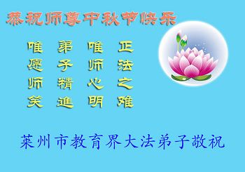 大庆湖滨教师花园一家三口大法弟子敬贺 2014/9/3 山东省烟台市莱州市教育界大法弟子恭祝中秋节快乐!