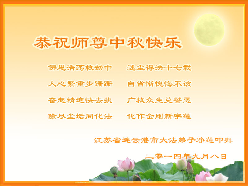 江苏省连云港市大法弟子净莲恭祝师尊中秋节快乐!