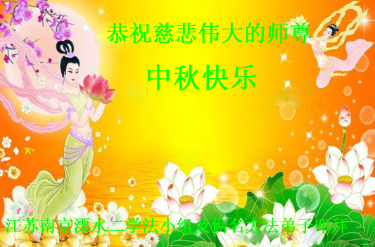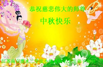 我们一定听师父的教诲,不辜负师尊和众生对我们的期望,努力做好三件事,精進再精進,救度众生,助师正法,证实大法,圆满随师还! 盐城两大法弟子叩首!合十! 江苏省南京石油系统一学法小组恭祝慈悲伟大的师父中秋节快乐!