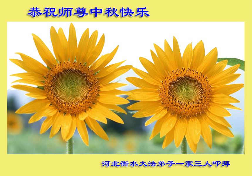 【明慧网二零一四年九月八日】 河北衡水大法弟子一家三人恭祝师尊中秋快乐!