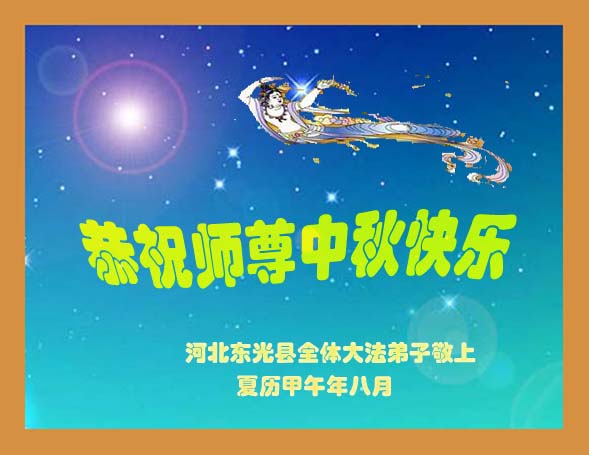 弟子一定会好好修,努力做好三件事,和师父回家。 河北省沧州市东光县全体大法弟子恭祝师尊中秋节快乐!