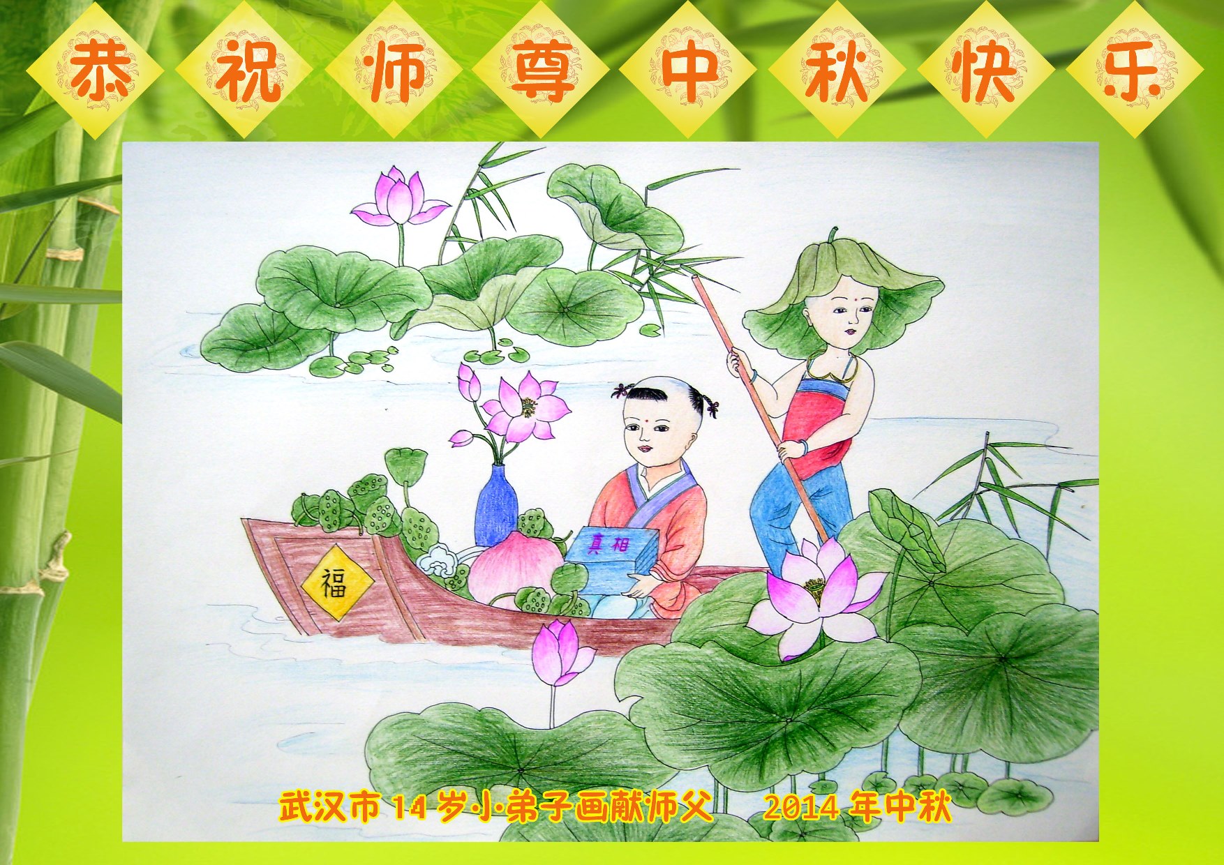 武汉市小弟子绘画献师父,祝师父中秋快乐! 湖北省武汉大法弟子恭祝师尊中秋快乐!