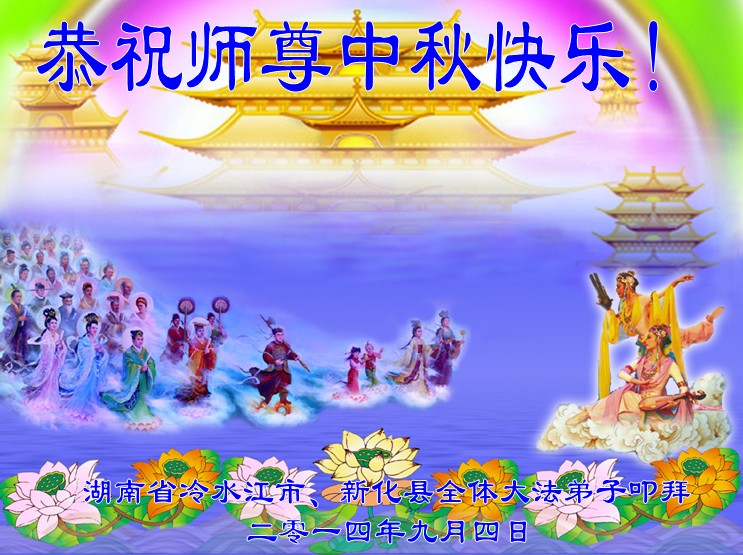 谢谢师尊慈悲苦度,弟子一定做好师尊交办的三件事,跟师尊回家。 湖南怀化新晃全体大法弟子跪拜师尊,祝师尊中秋节快乐! 湖南省娄底市冷水江市全体大法弟子恭祝师尊中秋快乐!