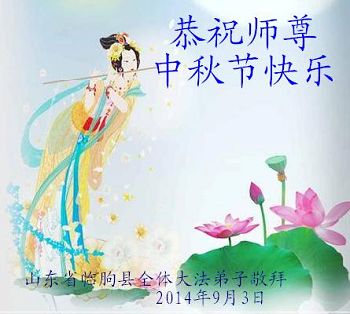 【明慧网二零一四年九月八日】 山东省潍坊市临朐县大法弟子恭祝师尊中秋节快乐!