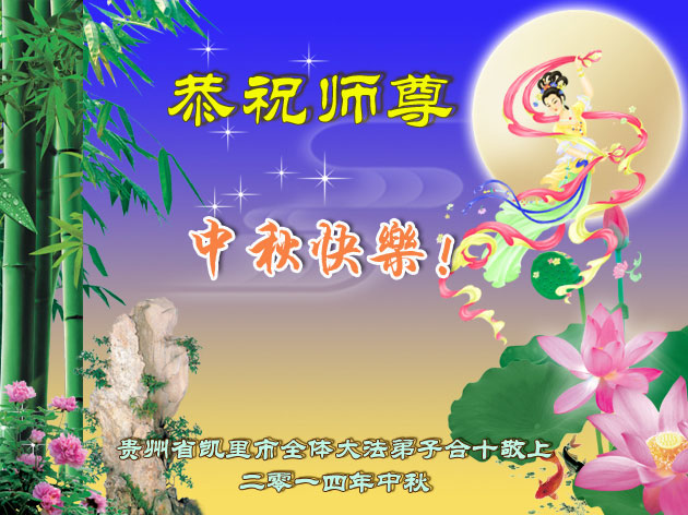 【明慧网二零一四年九月八日】 贵州省黔东南州凯里市全体大法弟子恭贺师尊中秋快乐!