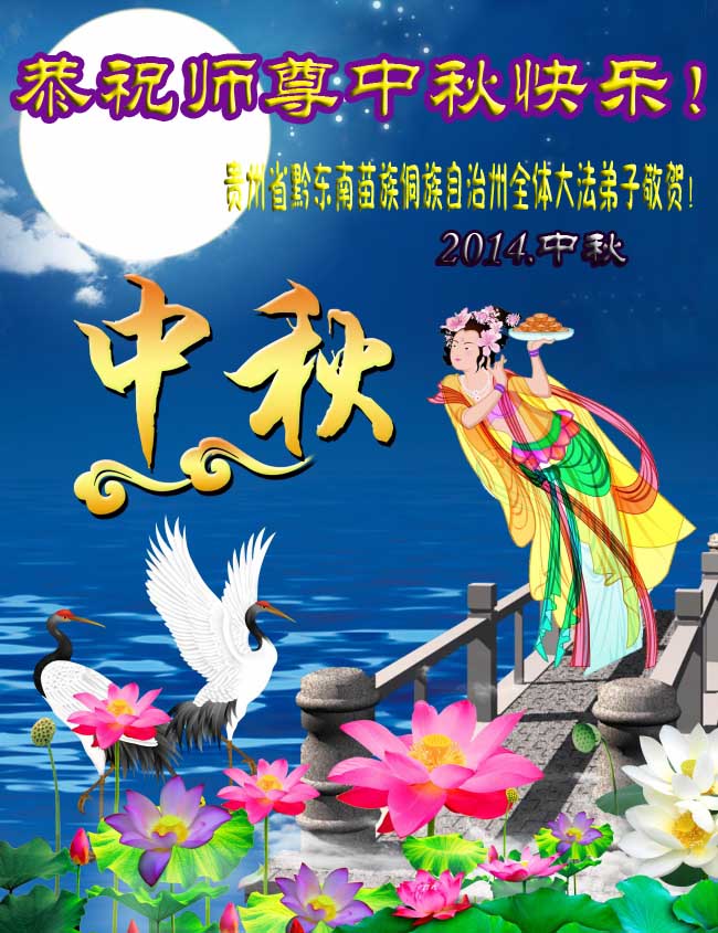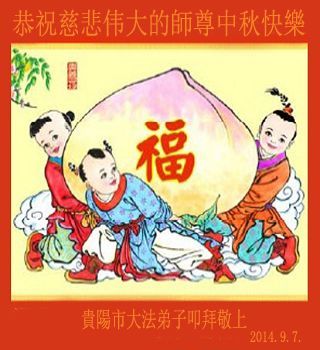 日复中秋念师尊 弟子有今谢师恩 不忘三事日精進 多救众生慰师心 贵阳市大法弟子敬上 2014.9.3。 贵州桐梓大法弟子恭祝师尊中秋佳节好!