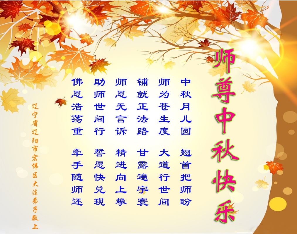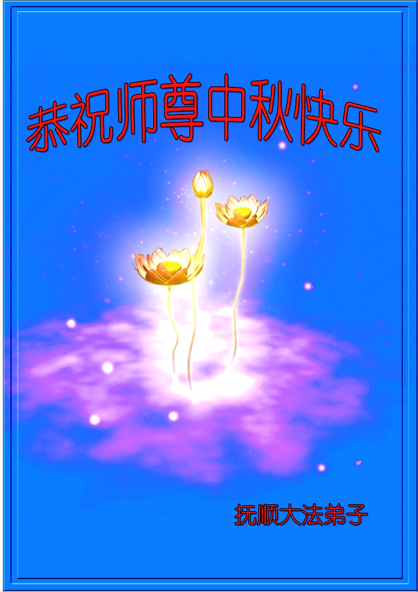 恭祝师尊中秋节快乐!感恩师尊的慈悲苦度, 师尊您太操劳了,弟子感恩,能沐浴在您的法光里,一路上得到您的呵护, 弟子感到无比的幸福。在最后的时间里,扎扎实实的学好法,去执着,多救世人,做好三件事。感恩师尊,再次恭祝师尊中秋节快乐!跪拜师尊! 辽宁抚顺大法弟子合十! 辽宁鞍山大屯全体大法弟子恭祝师尊中秋节快乐!