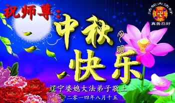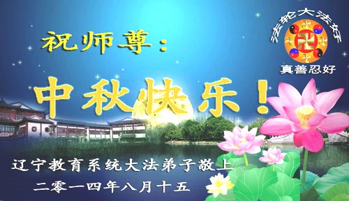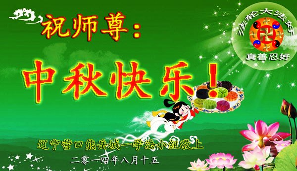 慈悲伟大的师父!弟子祝您中秋节快乐!谢谢师父的慈悲苦度!师父辛苦了! 辽宁省阜新市大法弟子 2014年9月3日 辽宁抚顺大法弟子一家人恭祝师尊中秋快乐!