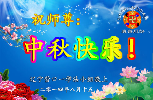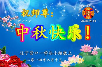 师父请放心,我会一如既往修好自己的同时,配合同修救度众生! 二零一四年九月四日 辽宁省铁岭市昌图县某镇全体大法弟子恭祝慈悲伟大的师尊中秋节快乐!