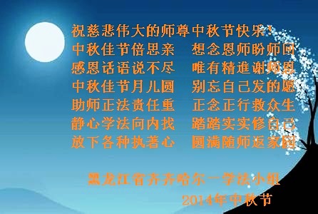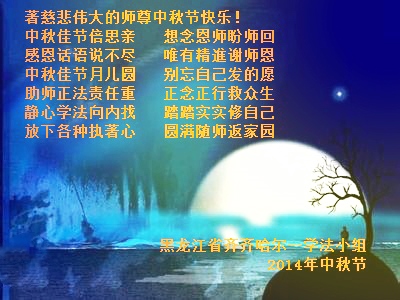 黑龙江齐齐哈尔一学法组大法弟子恭祝师尊中秋快乐!