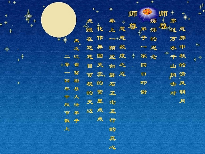 师父您好!您辛苦了!中秋节快乐! 黑龙江省齐齐哈尔市富裕县大法弟子恭祝师父中秋快乐!