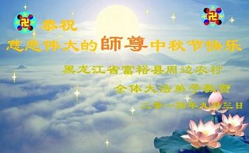 黑龙江省齐齐哈尔市富裕县全体大法弟子恭祝师尊中秋节快乐!