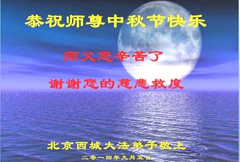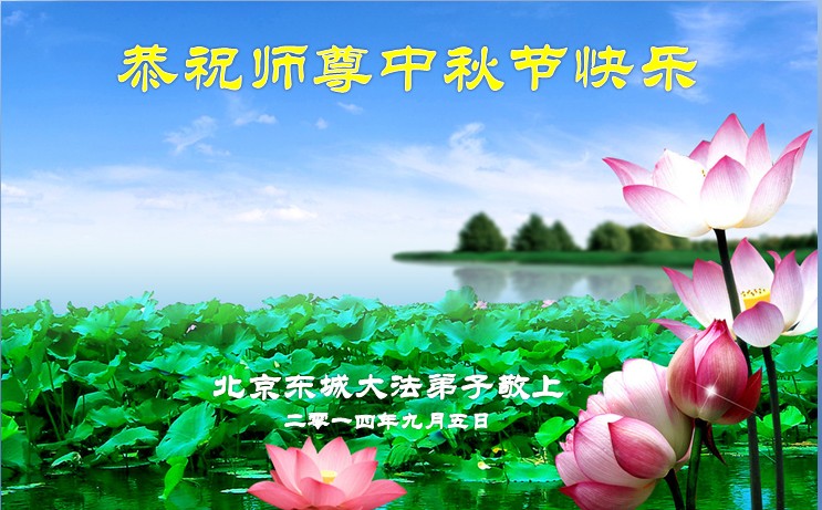 【明慧网二零一四年九月八日】 北京方庄、永外地区大法弟子恭祝师尊中秋快乐!