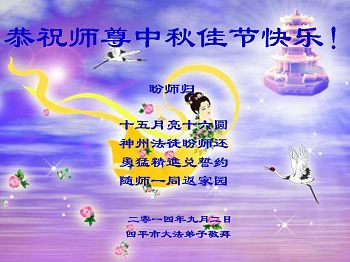二零一四年中秋来临之际,吉林省长春榆树大法弟子恭祝师尊中秋快乐!感激师尊呵护!谢谢师尊! 二零一四年九月七日 吉林省长春大法弟子祝师尊中秋快乐!