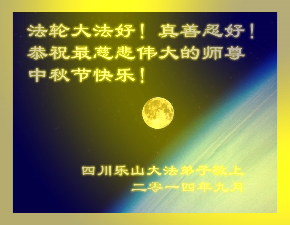二零一四年九月四日 四川乐山大法弟子恭祝慈悲伟大的师尊中秋节快乐!