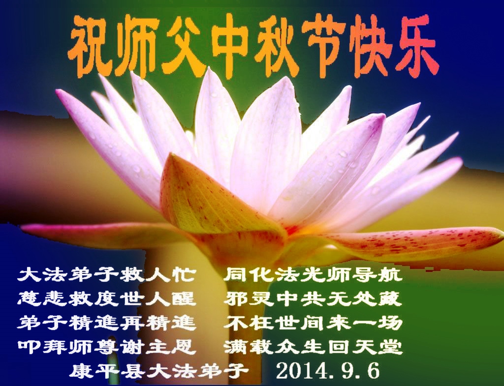【明慧网二零一四年九月八日】 辽宁省沈阳市康平县大法弟子恭祝师尊中秋快乐!