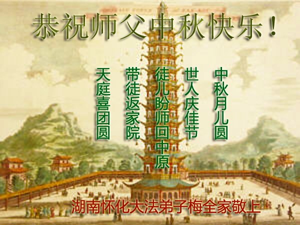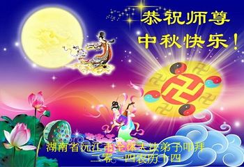 湖南怀化一大法弟子全家恭祝大法师父中秋节快乐!