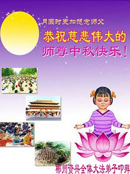 我们深知今天的一切是用金钱换不来的,是大法给了我们新生,千言万语表达不了我们对师父的感恩,唯有将我们受益的事实告知广大民众,让更多人受益于大法。愿师父少一份操心,多一份欣慰! 湖南郴州资兴全体大法弟子叩拜 湖南省怀化地区安江大法弟子向伟大的师尊中秋佳节问好!