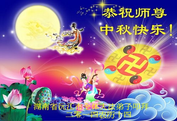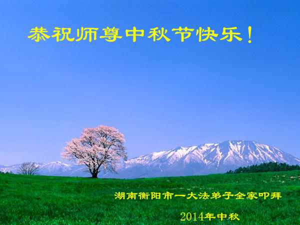 湖南省岳阳一家大法弟子敬上 2014.9.7。 湖南郴州大法弟子恭祝慈悲伟大的师尊中秋节快乐!