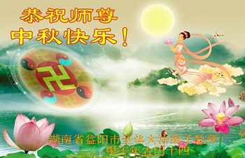 一年一度的中秋佳节又到了,每逢佳节倍思亲。我们全家大法弟子无时无刻不想念慈悲的师父。虽然我们和师父远隔万水千山,但是我们已神驰大洋彼岸和师父心心相通。无论证实大法之路多么的艰难,多么险恶,我们都会坚定的做好三件事,完成史前我们的洪誓大愿!不辜负师父对我们的殷切期望,最后千言万语汇成一句话: 遥祝师父中秋佳节快乐! 湖南郴州一大法弟子全家叩拜 湖南岳阳大法弟子八人学法小组恭贺慈悲伟大的师尊二零一四年中秋节快乐!