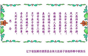 辽宁省抚顺市清原县两名大法弟子恭祝慈悲伟大的师尊中秋节快乐!