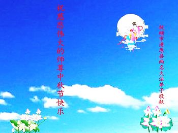恭祝师尊中秋快乐! 月是中秋圆 茫茫苍宇间 举头问明月 恩师何日还 八月十五感恩 辽宁抚顺一学法小组大法弟子敬叩 辽宁抚顺大法弟子恭祝师尊中秋节快乐!