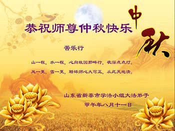 弟子无法用语言感激师尊的慈悲救度,期盼着与师尊早日团圆。 弟子们叩拜合十! 山东威海大法弟子恭祝慈悲伟大的师尊中秋节快乐!