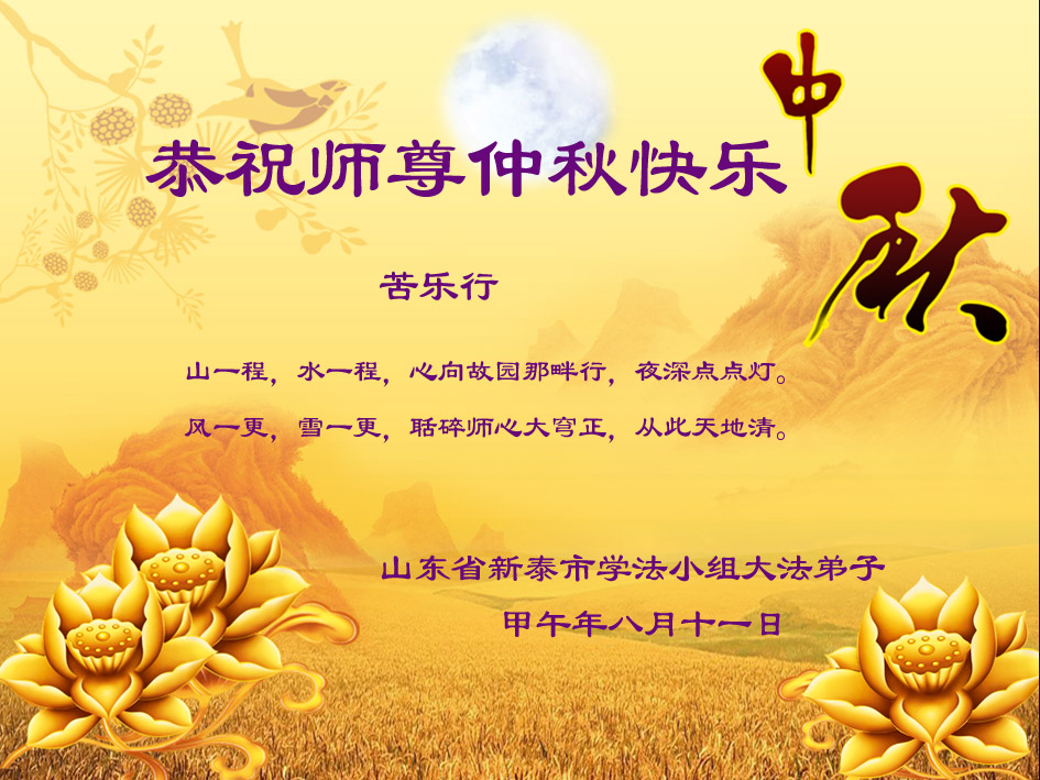 山东省泰安市新泰市学法小组大法弟子恭祝师尊中秋快乐!