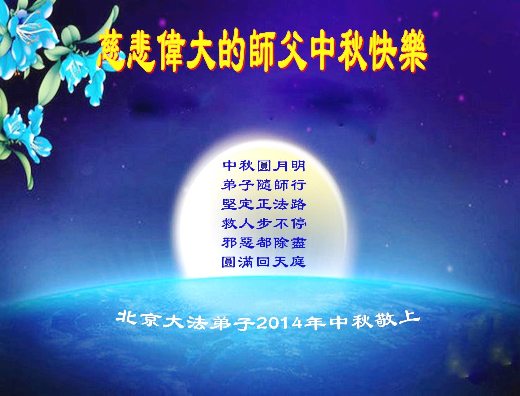 中秋来临之际,我们恭祝师尊中秋快乐! 大陆北京大法弟子 2014年9月7日 四川大法弟子恭祝师尊中秋好!