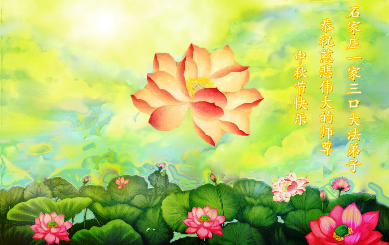河北省石家庄一家三口大法弟子恭祝慈悲伟大的师尊中秋节快乐!