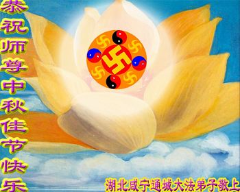 湖北省黄石市大法弟子敬上 二零一四年九月七日 江苏连云港市一大法弟子恭祝师父中秋节好!