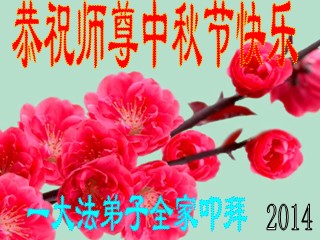 湖北一大法弟子全家敬上 2014/9/6 黑龙江省牡丹江市大法弟子一家三口恭祝慈悲伟大的师尊中秋快乐!