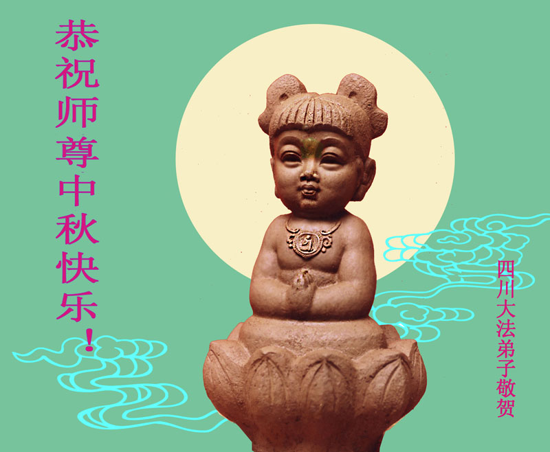 以蓝天作纸、高山当笔、海水为墨,也难尽述师父的佛恩浩荡。得大法十八年来,在师父的慈悲呵护下,我们得以走到今天。在正法即将结束的今天,我们一定要谨遵师父的教诲,做好三件事,抓紧时间多救人,完成历史使命。再一次祝师父中秋节快乐!双手合十! 七名大法弟子跪拜师尊! 四川大法弟子恭祝师尊中秋快乐!