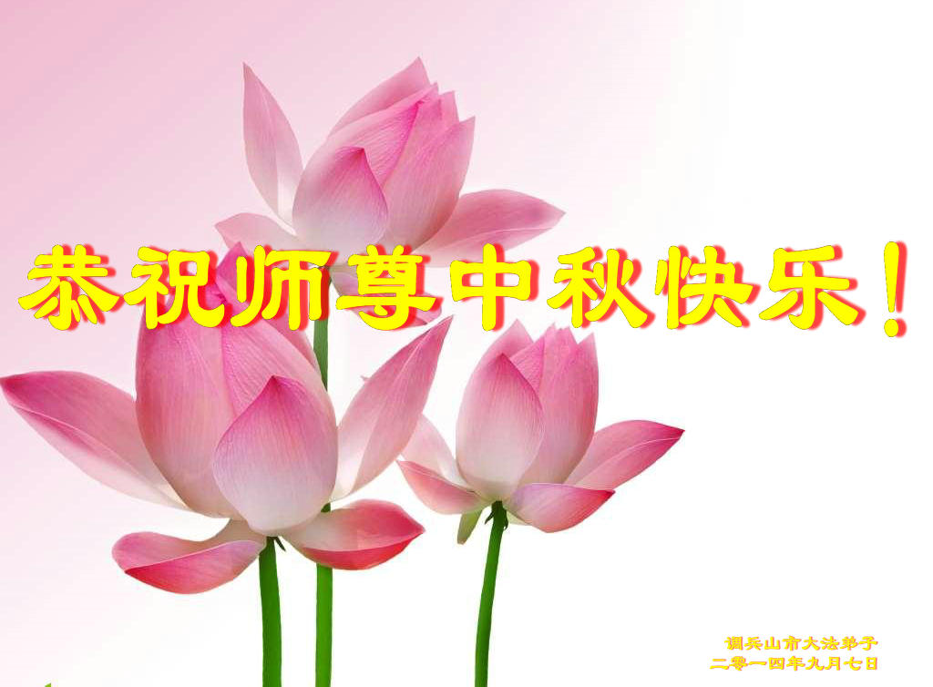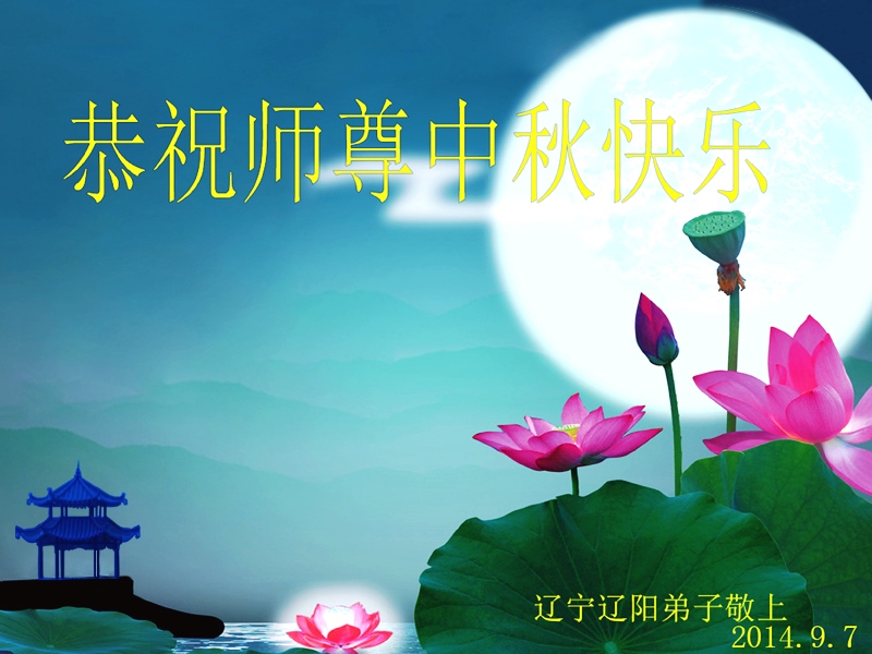 是师父的慈悲呵护,弟子才能走到今天,无法用语言表达感激之情,在此中秋佳节弟子叩拜师尊,师尊辛苦了!弟子要加倍努力精進实修,兑现誓约,完成史前大愿,圆满随师还。 二零一四年九月六日 辽宁两名大法弟子 山东临漳大法弟子恭祝慈悲伟大的师尊中秋节快乐!