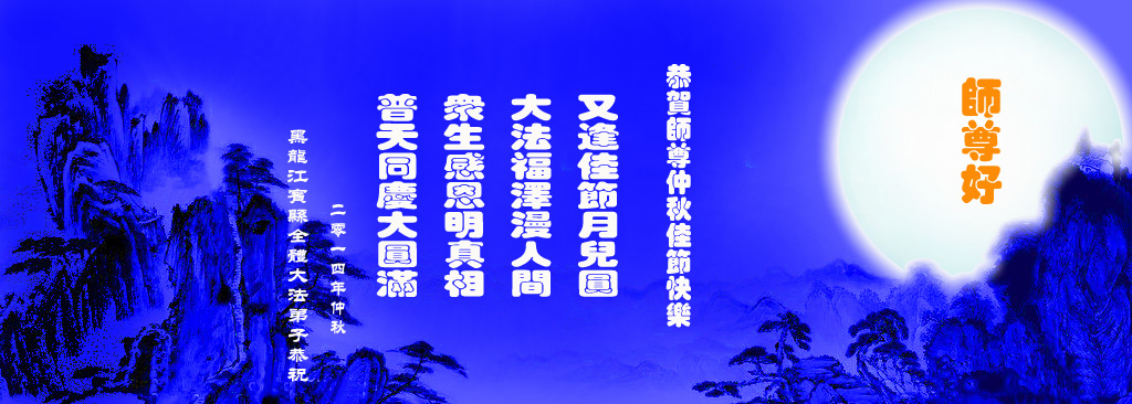 又逢佳节月儿圆 大法福泽漫人间 众生感恩明真相 普天同庆大圆满 黑龙江宾县全体大法弟子恭贺! 2014年中秋 黑龙江省哈尔滨大法弟子祝师尊中秋快乐!