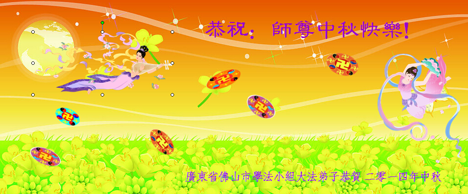 师父好,师父中秋快乐! 广东省佛山市大法弟子恭祝慈悲伟大的师尊中秋节快乐!