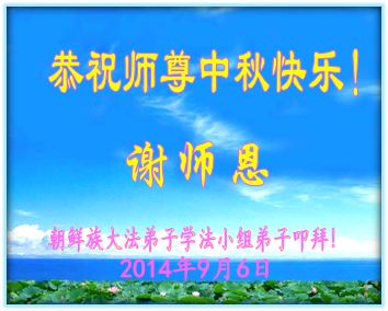 师尊呀,我们十分想念您,盼您早回国,早日欢聚一堂,携手共祝节日快乐! 四川省攀枝花市东区全体大法弟子 二零一四年九月六日 吉林省延边朝鲜族学法小组大法弟子恭祝师尊中秋快乐!