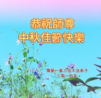 当2014年中秋佳节即将到来之际,我们远在大陆的大法弟子真诚的向远在海外的伟大的师尊李洪志大师问好!并衷心的祝愿师尊中秋快乐! 看看当前的形式,我们倍感都在印证师尊的远见。我们要在师尊安排的修炼路上走到底,助师正法,做好三件事! 北京地坛大法弟子 2014年9月6日 山东省烟台开发区一家三口大法弟子恭祝师尊中秋快乐!
