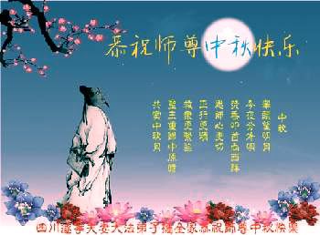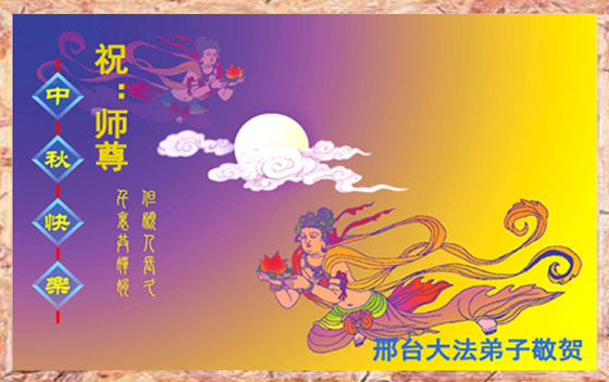 佳节又临 今岁皓月份外明 清辉洒片寰宇间 法光盈 焚香叩首拜师尊 祝师佳节万福临 三件事情再精進 随师行 师父你好!又逢佳节,我们更加想念师父,我们会更加正念正行,救更多世人,同时修好自己,在此谨向师父致以节日的问候,并祝师父中秋节快乐! 河北省大法弟子恭祝慈悲伟大的师尊中秋节快乐!