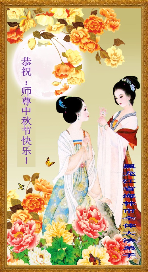 大陆大法弟子全家正值中秋佳节,祝师尊中秋快乐!感谢师尊的慈悲救度。弟子全家叩拜师尊。 黑龙江省牡丹江市海林市大法弟子恭祝师尊中秋快乐!