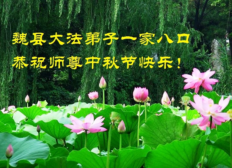 恭祝师尊中秋节快乐! 千言万语表达不尽对师尊您的无限感恩。是您巨大的承受延长了救度众生的时间;是您巨大的承受延长了让弟子成熟的时间。我希望我们所有大法弟子都达到修炼如初的状态,我希望能救度了所有可救度的众生。弟子真的很想念师尊。我代表建筑体系众生恭祝师父中秋节快乐!我也代表我们学法小组同修恭祝师父中秋节快乐!我也代表家中小同修及还没修炼的家人恭祝师父中秋节快乐! 河北省邯郸市魏县大法弟子一家八口祝师尊中秋节快乐!