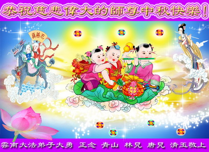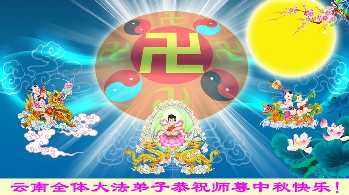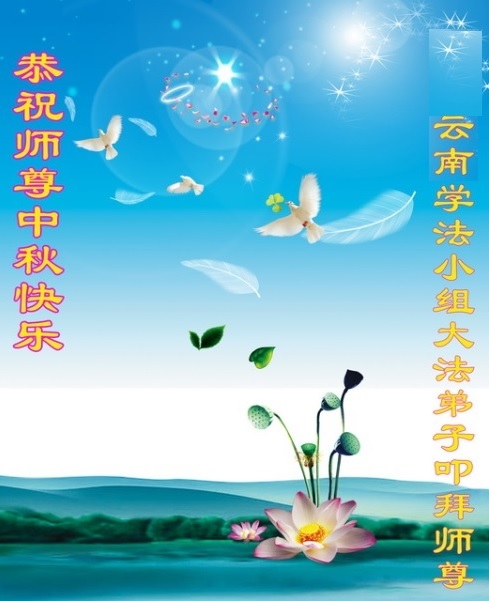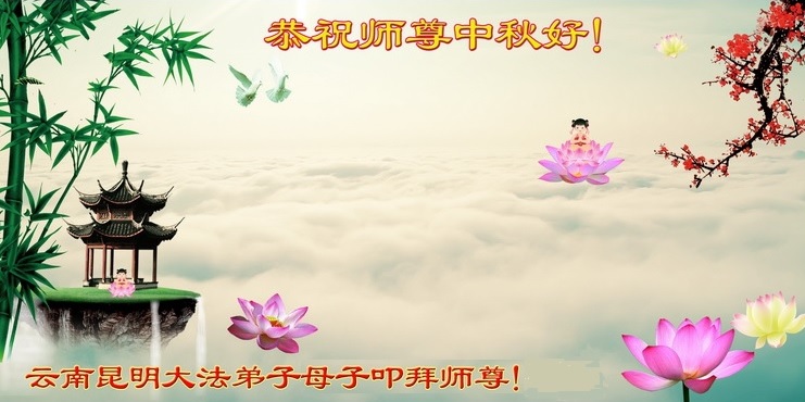 云南大法弟子大勇、正念、青山、林儿、唐儿、清玉恭祝慈悲伟大的师尊中秋快乐!