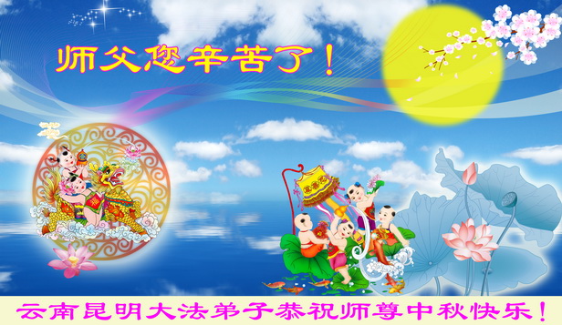 云南昆明三位大法弟子恭祝慈悲伟大的师尊中秋快乐!