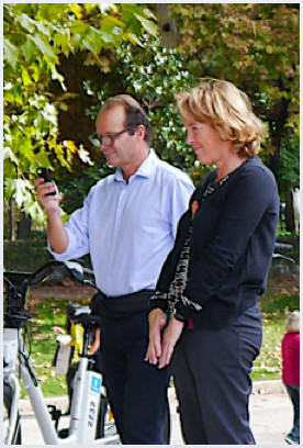 图3-5:法轮功学员炼功时祥和的音乐,轻柔的动作,吸引了很多游客驻足观看,有的还模仿炼功动作,也有的拿起真相资料,了解什么是法轮功 |