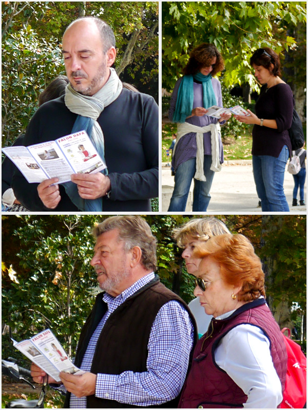 伴随着祥和优美的音乐,他们微闭双目,静静的做着缓慢,柔和的动作。他们展现的淡定、祥和就如同是在另一个与繁华闹市隔绝的平和世界里一般。看到他们,有的游客停住了脚步,静静的看着;有的模仿动作,希望也能感受那份宁静;有的想了解更多,便拿上一份真相传单…… 这十多年来,当地的法轮功学员都会来此集体炼功,每次也都会有一些人慕名来学炼功法。特别是在西班牙每年的国家健康博览会后,有时甚至会有几十人在得知法轮功的讯息后来炼功点学炼功法,他们来自不同的年龄段,不同的职业,有时甚至不同的国家。很多人在感受炼功点上的能量及法轮功的美好后,又将法轮功介绍给自己的亲朋好友。 Raina女士就是在朋友的介绍下第一次来学炼法轮功的。炼完后她羡慕的看着那些还在打坐的老学员,希望自己也能象他们一样,那么祥和的炼功:“第一次炼功的感觉非常好,我得到了很大的鼓舞。我非常喜欢,我还会再来,也会在家自学功法。” 将法轮功介绍给Raina的保加利亚姑娘Pepa自己也才炼了两个月而已:“我感受到了很好,很大,很强的能量,从来没有感受到这么强的能量。”在短短的两个月里,身为诗人的她惊讶的发现,自己更能集中注意力,也大大的提高了创作的数量和质量。所以她非常乐意将法轮功介绍给更多的朋友:“法轮大法非常好,非常神奇,我会与更多的朋友分享,来感受这里的能量。” Pepa补充说,其实她最开始想炼法轮功还有一个原因:当我听说中共对法轮功的迫害时,很长一段时间我都感到非常难受,非常伤心。所以我想,不论这个功法的效果如何,我都会学炼,我想捍卫人权。 巧的是将法轮功介绍给Pepa的Valentina也是从朋友那里听说法轮功的。她说:“在炼功后感到精力充沛,能够集中注意力,也能平衡好家庭关系。以前我经常会为了管教已成年的儿子和女儿而生气,但是修炼后我能够平和的对待他们,倾听他们的评论。我变得非常平静,不再对他们大吼大叫了。”儿女们高兴地鼓励她参加集体炼功:“妈妈,去炼功吧,每次你回来后都那么平和、高兴,快去吧!” Valentina也很高兴和其他的朋友们分享自己美好的感受:“修炼法轮功后让我感到非常轻松。我所得到的都是正面的改变。为此没有任何付出,甚至都不用交学费。就是光告诉别人这些经历也让我高兴。” 半年前搬到马德里的David从未缺席过每周的集体炼功,他谈到:“集体炼功能量场非常好,能让大家在炼功中坚持下去,也是很好的交流修炼心得的机会。同时会让人知道法轮大法,而这非常重要,我希望能有更多人能了解法轮大法,并从中受益,就像我自己一样。” 两小时后,炼功人带着轻松平和的心境各自离去,只留下那棵伴随在法轮功学员旁边,有时遮阳、有时挡雨的大树,静候下周的重逢。 |