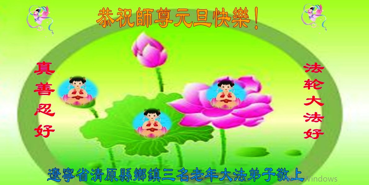 我们各自代表全家给慈悲伟大的师尊叩首!恭祝师尊新年好!感谢师尊对我们的慈悲救度!我们一定按照师尊的要求做好三件事,圆容好法,勇猛精進。盼师尊早日回来,弟子都很想念您! 辽宁抚顺清原县某乡镇老年大法弟子恭祝师尊元旦快乐!